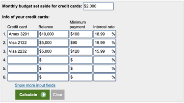 I was looking for a simple online credit card calculator to help me create an optimized payment plan. The one I found was easy to use and generated a helpful action plan, making it our top recommendation from www.calculator.net