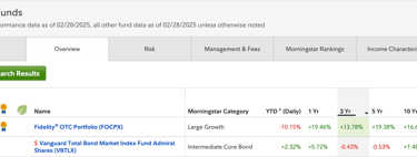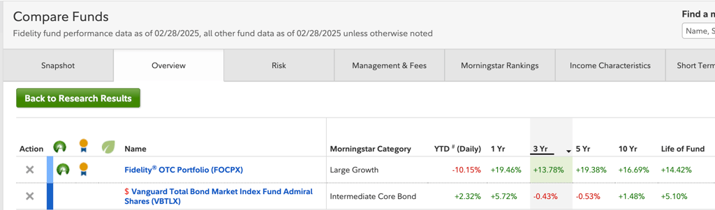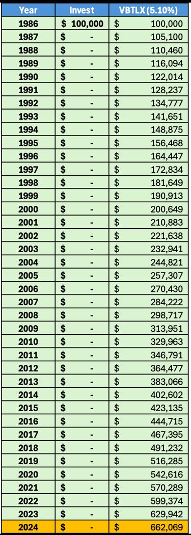 Comparison: The following calculation is derived from the average lifetime performance of Vanguard Total Bond market funds and FOCPX.