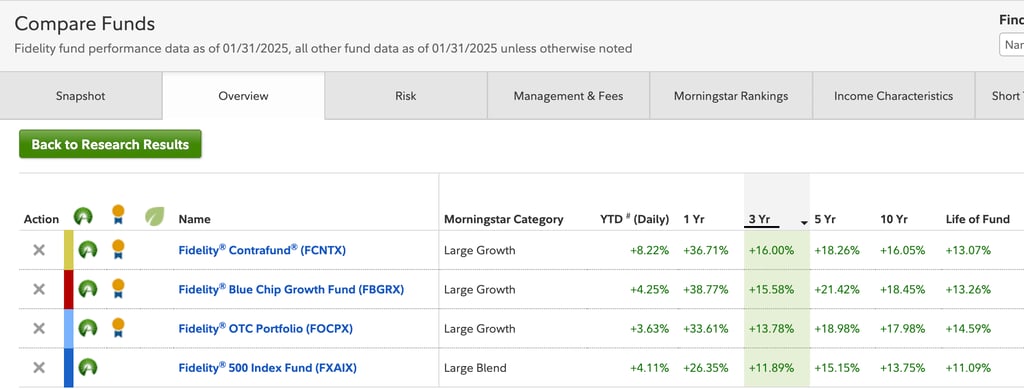 Comparison: Using lifetime average returns, we compared four funds that have been in operation for over 30 years.